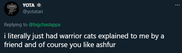 28 / (She/her) / AnimatorHi! I'm Big Chalupa, or just Lupa! I'm a SCAD grad (2017), who majored in animation! I'm currently working for Icecreamsandwich, and I've previously worked with SomethingElseYT and TheAmaazing!My interests are essentially Warrior Cats, Pokemon, and Animal Crossing, though I do sometimes post about other things. I don't really remember to tag things, so I'm sorry in advance if I share something you are uncomfortable with (not that I expect this to happen, I try to stay relatively PG-13).I currently am just kind of obsessed with my own OCs, and I have a story linked below that focuses on them!Thank you so much for reading!
